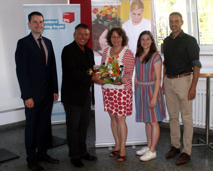 Freuten sich am Ende eines interessanten Fachgesprächs mit intensiver Diskussion: (v.li) SPD-Kreisvorsitzender Martin Kreutz, Leiter der Tk Bayern, Martin Bredl, Ruth Müller, MdL, Juso-Bundesvorsitzende Johanna Uekermann und Christian Schwarz, stellvertretender Vorstand des Kommunalunternehmens Kreiskliniken Bogen-Mallersdorf